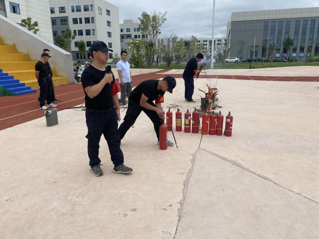 在操场集合后,学校邀请专业消防人员为师生进行了灭火器和消火栓正确使用方法的讲解与实操演示。消防人员细致地讲解了灭火器的操作步骤,并现场演示灭火过程。随后,部分师生在消防人员的指导下也亲身体验使用灭火器扑灭模拟火源,进一步熟悉掌握了灭火器和消火栓的正确使用方法。