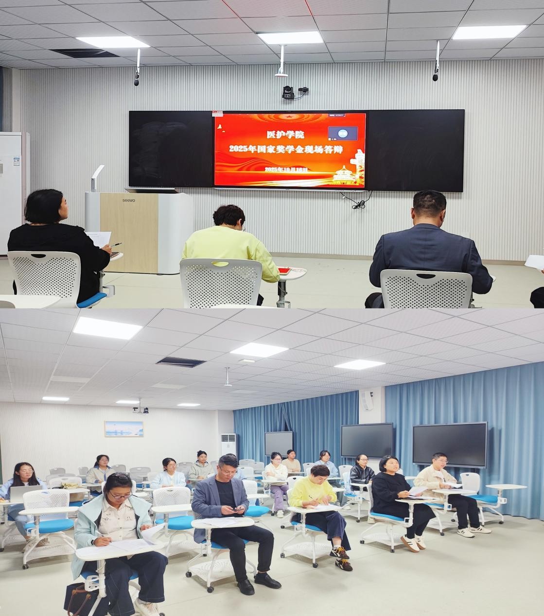 2025年10月16日晚19:00,天门职业学院医护学院2024-2025学年国家奖学金答辩会在2217教室隆重举行。来自23级、24级的11名候选人同台比拼,用真诚与实力向“大学生最高荣誉”发起冲击。医护学院院长王冰、党支部副书记赵梦丹、副院长卢明华、副院长胡伟伦、基础医学教研室兼医学技术教研室主任朱方敏担任评审专家。医护学院学工秘书贾莹全程协调组织,团总支书记许佳妮全程监督,确保评审公开、公平、公正。
