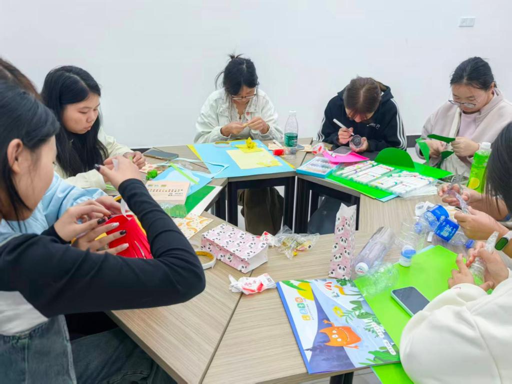 理论学习后,学生干部们围绕“清废行动”开展手工DIY实践。大家提前收集塑料瓶、旧报纸、废布料等可回收物,通过裁剪、拼接、装饰将其转化为实用且艺术的手工艺品。现场创意与环保交融,同学们在动手中践行环保理念,既锻炼了能力,又深刻体会到“变废为宝”的生态智慧,实现了从理论到实践的环保行动闭环。