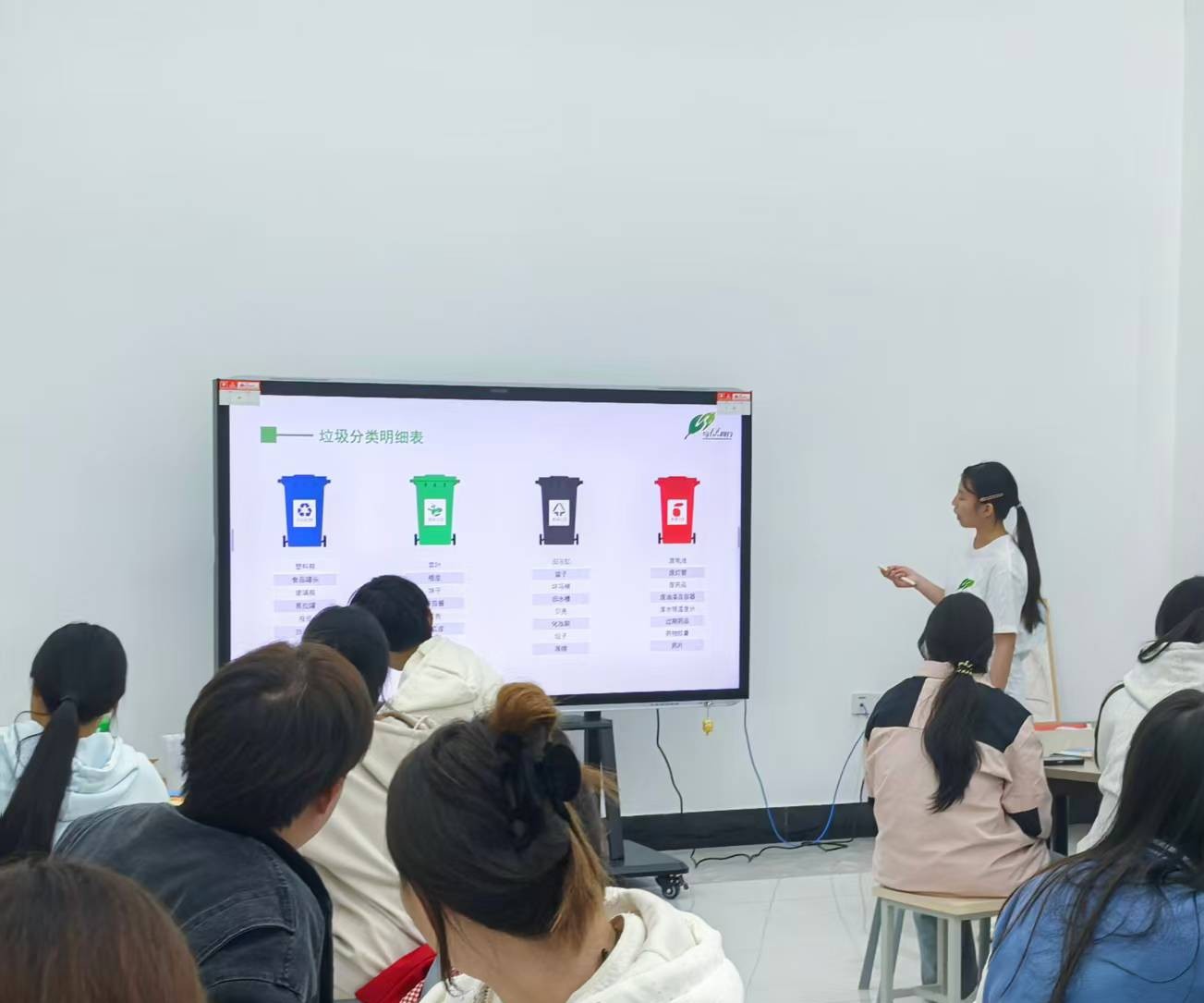 章若文同学围绕“垃圾分类的健康密码”开展知识科普。通过对比《生活垃圾分类制度实施方案》中四大类垃圾的处理流程,她介绍了塑料瓶、废纸张等可回收物的再生利用价值,以及电池、过期药品等有害垃圾的规范处置方法。现场分享环节中,章若文以“医疗垃圾vs生活垃圾”对比模型,直观展示了错误分类可能导致的健康风险,强化了学生干部对“分类行为即健康行为”的认知。